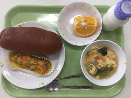 献立 ココアパン 魚のカレーマヨネーズ焼き トマトとレタスのスープ 甘夏 牛乳