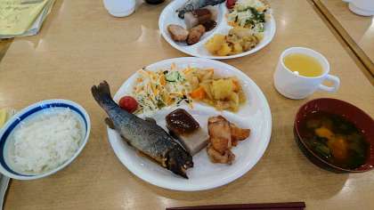 夕食は、豪勢です。つかみ取りはできませんでしたが、夕食にはマスの塩焼きが付いています。