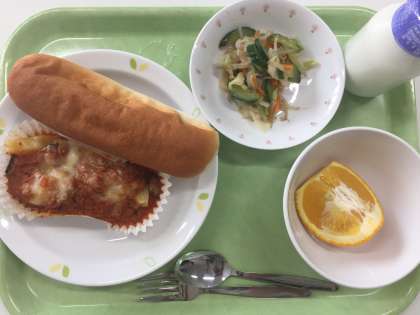 献立 米粉パン 夏野菜のグラタン みそドレサラダ 甘夏 牛乳