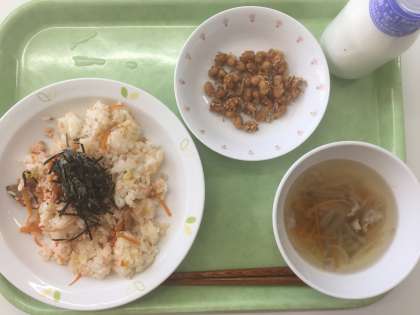 献立 鮭ずし さわにわん じゃこと大豆の揚げ煮 牛乳