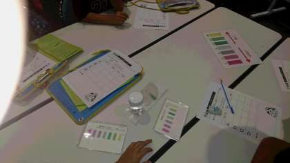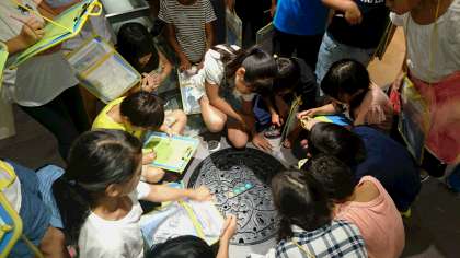 最後の見学地は、虹の下水道館です。水の汚れをしらべるワークショップと、展示物のガイドツアーに参加しました。下水道の仕組みを、モデル施設を使って、わかりやすく説明していただきました。