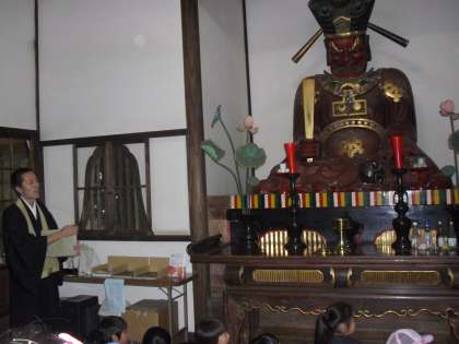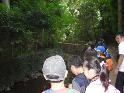 10月8日金曜日に、社会科見学で世田谷めぐりを行いました。次大夫堀公園(昔の民家や昔の道具など、今とは異なるつくりや仕組みにびっくり!知恵と工夫がいっぱいでした)→九品仏浄真寺(えんま様にウソをついたことを謝り、あみだ様や仏様のありがたいお話をうかがいました)→野毛山古墳(美味しいお弁当を食べました♪)→等々力渓谷(湧き水が出ていました。歩いてきた道路と、渓谷では明るさも涼しさも異なりました)の順に、バスでめぐりました。みんな一生懸命メモをとったり、いろいろな質問をしたり・・・意欲をもって取り組む姿が見られました。社会科で学習したことを、実際にめぐって体験することができました。