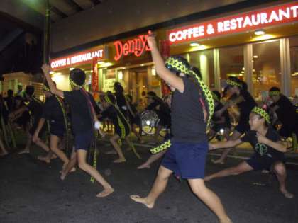 商店街に着くころには、子ども達の表情には徐々に緊張感が…。学校で集合した時の余裕がうそのようです。それもそのはず、狭い路上で踊るわけですから、間近で家族や近所の方々の熱い視線がそそがれているのです。