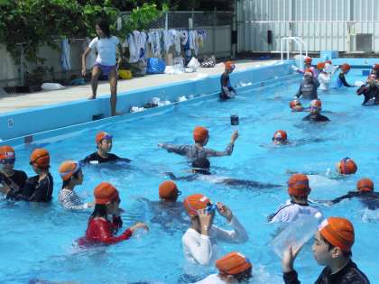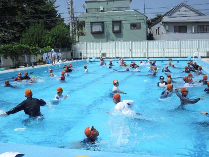 今年度の水泳学習の最後は、着衣泳です。体験を通して、助けが来るまで生命を維持し続ける方法や、対処方法などを学びました。