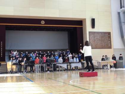 歌詞の「ありがとう」「さようなら」を6年生と他の学年が掛け合いで歌い、3月に卒業する6年生との時間を大事にして過ごそう!と思わせるような素敵な合唱でした。