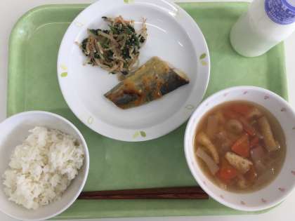 献立 ごはん 鰆の西京焼き ごま和え のっぺい汁 牛乳