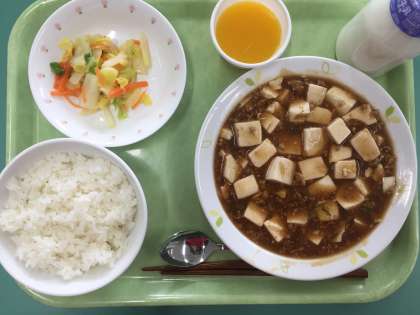 献立 ごはん マーボー豆腐 白菜のサラダ みかんゼリー 牛乳