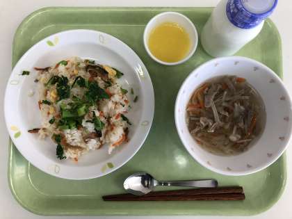 献立 菜の花寿司 沢煮碗 桃ゼリー 牛乳