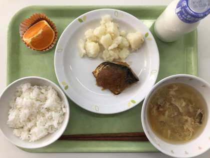 献立 ごはん さばのおろしだれ 粉ふき芋 せとか 牛乳