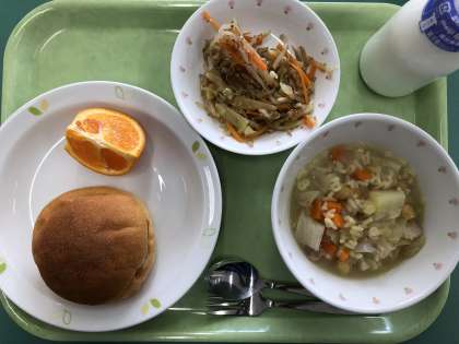 献立 カレーミートサンド ABCスープ もやしサラダ なつみ 牛乳