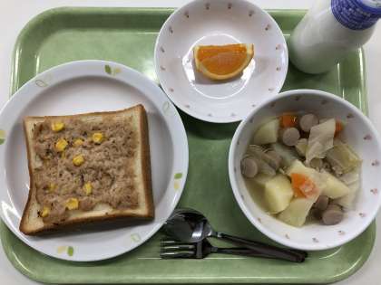 献立 ツナトースト ポトフ 清見オレンジ 牛乳