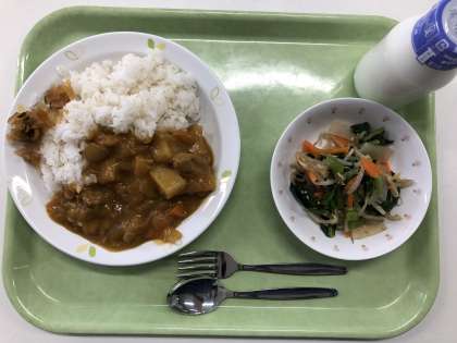 献立 カレーライス 福神漬け こんにゃくサラダ 牛乳