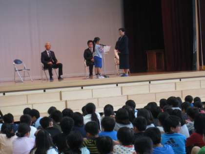 5月2日(水)に、離任式が行われました。お世話になった先生方のお話を聞き、笑顔と涙のお別れをしました。