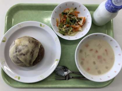 献立 ビスキュイパン じゃが芋のポタージュ 寒天サラダ 牛乳