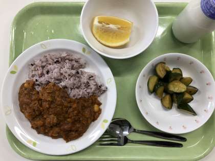 献立 豆カレー きゅうりの南蛮漬け 果物 牛乳