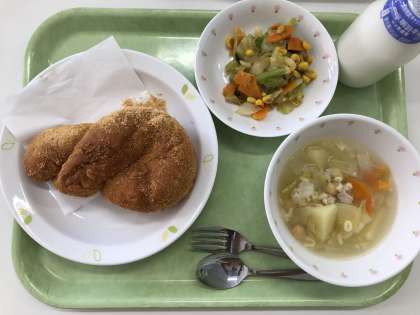 献立 きなこ揚げパン ABCスープ コーンサラダ 牛乳