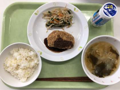 献立 ご飯 かぼちゃコロッケ 野菜のごま酢和え みそ汁 ジョア