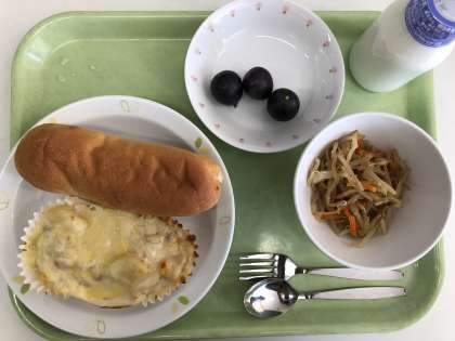 献立 米粉パン ポテトグラタン もやしサラダ きょほう 牛乳