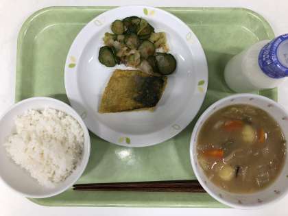 献立 ごはん 鯖のタンドールグリル 野菜のおかかあえ いものおづけばっと 牛乳