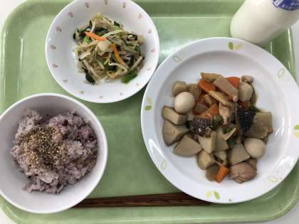 献立 黒米ごはん 筑前煮 みそドレサラダ 牛乳
