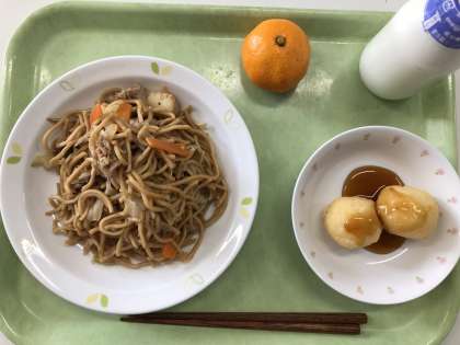 献立 ソース焼きそば じゃがいももち みかん 牛乳