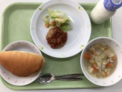 献立 セルフハンバーガー ABCスープ 一塩野菜 牛乳