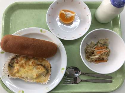 献立 米粉パン さつま芋のグラタン もやしサラダ 牛乳