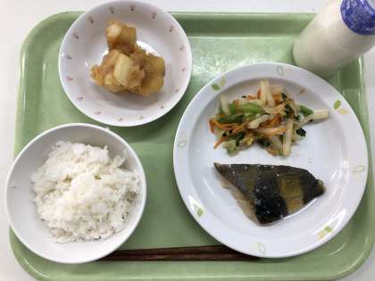 献立 ごはん 焼きほっけ 白菜のおかか和え じゃが芋の甘辛煮 牛乳