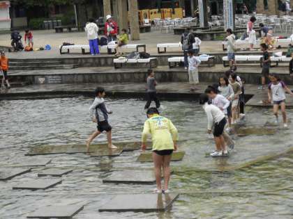 あいにくの曇り空→雨でしたが、水遊びもオリエンテーリングも