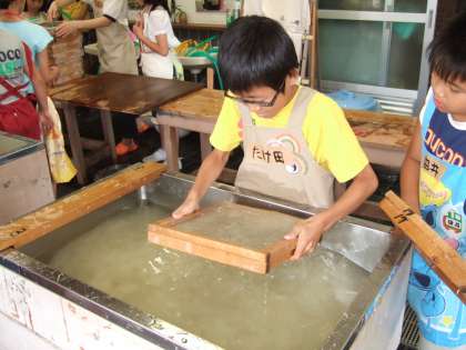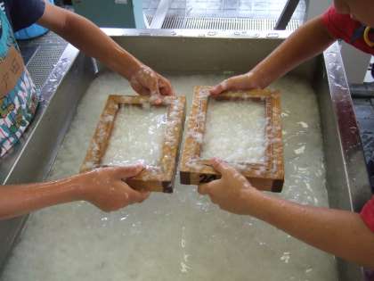 4年生は、毎年、山崎小学校の伝統工芸室に「紙すき体験」に行きます。