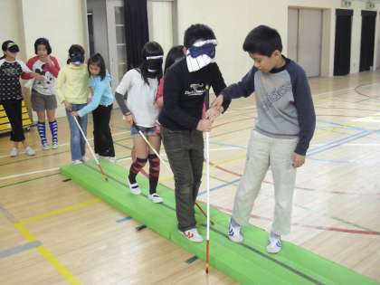 4年生に「アイマスク体験」と「車いす体験」の授業をしてくださいました。