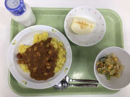 献立 ダールカレー コーンサラダ りんご 牛乳