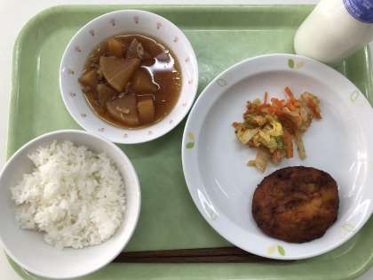献立 ごはん ゼリーフライ 白菜のおかか和え 大根のべっこう煮 牛乳