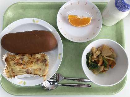 献立 ココアパン ポテトグラタン 大根のコチジャンだれ ゆめオレンジ 牛乳