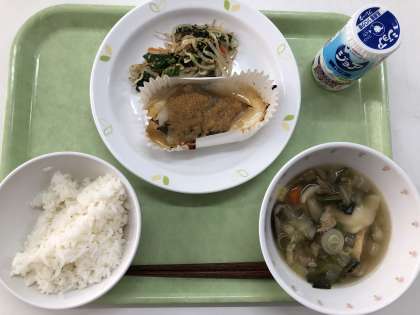 献立 ご飯 たらの麦みそ焼き ごま酢和え ひっつみ ジョア