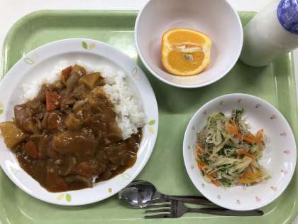 献立 カレーライス じゃこサラダ いよかん 牛乳