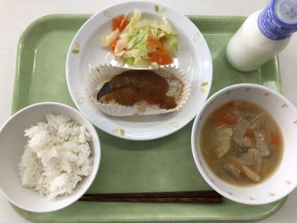 献立 ごはん しいらのおろしだれ 一塩野菜 おから入りみそ汁 牛乳