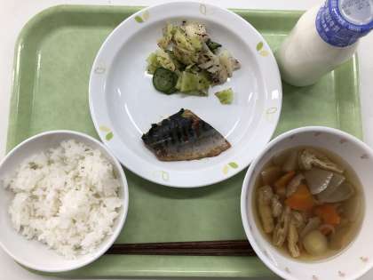 献立 ごはん さばの味噌煮 ゆかり和え けんちん汁 牛乳