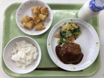 献立 ごはん ムロアジのメンチカツ 糸寒天サラダ じゃが芋の甘辛煮 牛乳