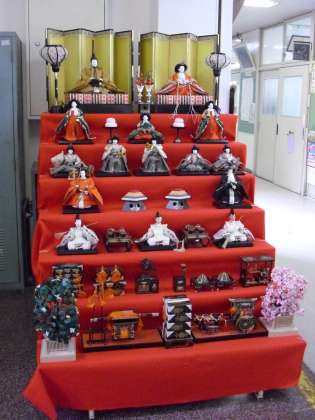 立春を過ぎて、少しずつ春めいて来ました。学校では、2月7日に1階事務室前の廊下におひな様の段飾りを飾りました。