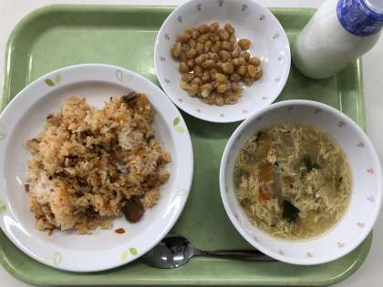 献立 キムチチャーハン ポリポリ大豆 かきたま汁