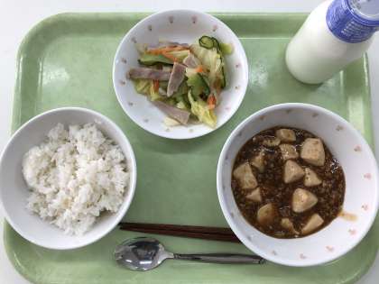 献立 ご飯 マーボ豆腐 春雨サラダ 牛乳