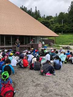 曇り空の下、ラジオ体操と朝食を済ませ、いざ雨乞山へ出発です。