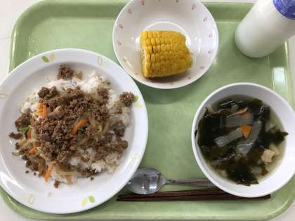献立 ビビンバ わかめスープ とうもろこし 牛乳