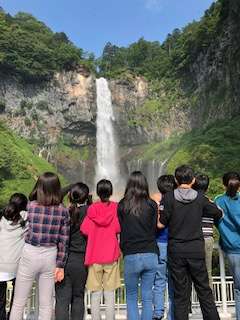 天候にも恵まれ、青空の下、華厳の滝の壮大な景観を堪能しました。その美しさに、皆うっとり。
