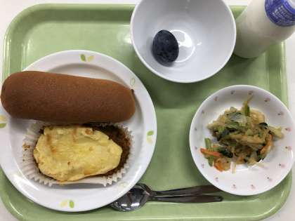 献立 米粉パン コテージパイ 寒天サラダ プルーン 牛乳