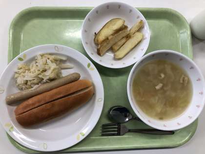 献立 セルフウィンナーサンド ABCスープ フライドポテト 牛乳