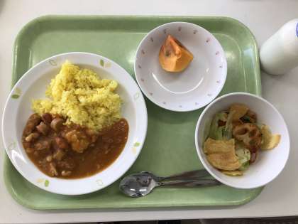 献立 フェイジョアーダ ぱりぱりサラダ 柿 牛乳