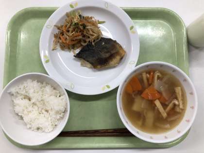 献立 ごはん ほっけの一夜干し 野菜のごま酢あえ のっぺい汁 牛乳