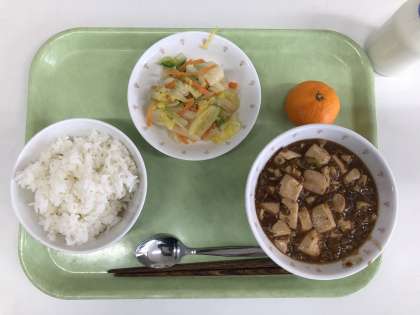 献立 ご飯 マーボー豆腐 白菜のサラダ みかん 牛乳